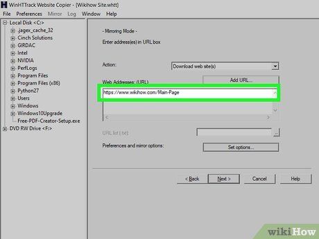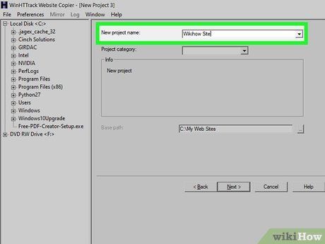 Name the project and choose the storage location. HTTrack recommends creating a folder for the entire website you're saving, then naming each individual page. The program will create separate folders for each project within the main directory.