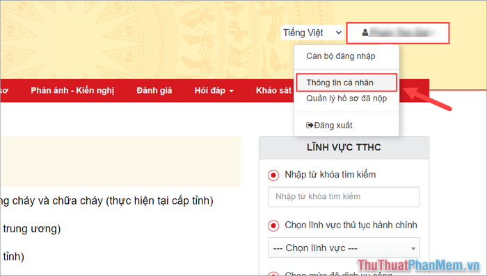 Step 3: After successfully logging in, select the Account ➞ Personal Information section to check the personal information on the Citizen Identification Card (CCCD) online.