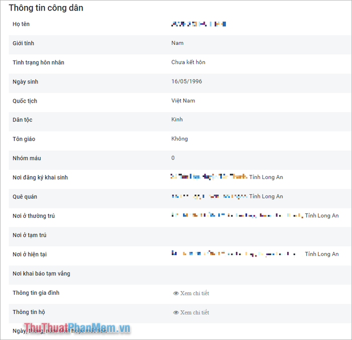 Step 4: The citizen information section will provide all personal details related to the CCCD being checked. This information is 100% accurate as it is inputted by the Ministry of Public Security and the Vietnamese Department of Resident Management.
