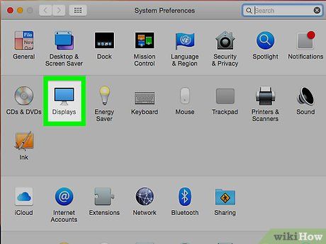 Click on the Displays tab. You will see the computer screen icon in the top left corner of the System Preferences window.