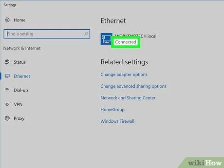 Check if the Ethernet cable is working. Your network name will appear at the top of the page with the word "Connected" underneath, indicating that the Ethernet connection is active.
