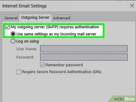 Click on 'More Options…' and choose 'Use incoming server info' for 'Authentication.' This step ensures Outlook runs smoothly and helps avoid common issues, though it isn't strictly necessary.