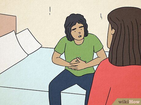 - If pretending to have a cold, cough and sneeze a little, then mention feeling dizzy. If faking a stomachache, hold your stomach and groan in pain.