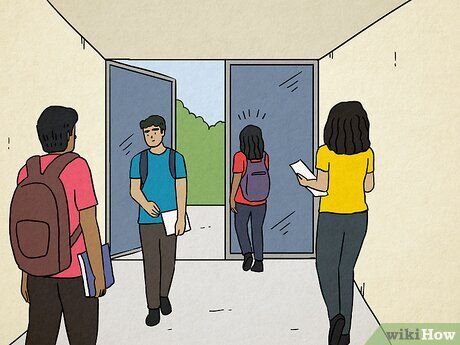 Leave school at the right time. If you plan to leave school during the day, choose a moment when you’re least likely to be noticed. This is usually when the school is bustling with students.