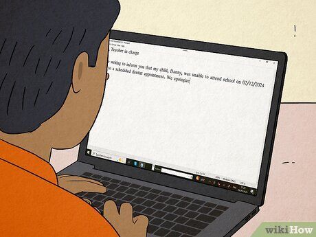 - Type the note instead of handwriting it. Your handwriting likely won’t resemble an adult’s, which could raise suspicions. Typing is safer and looks more formal.