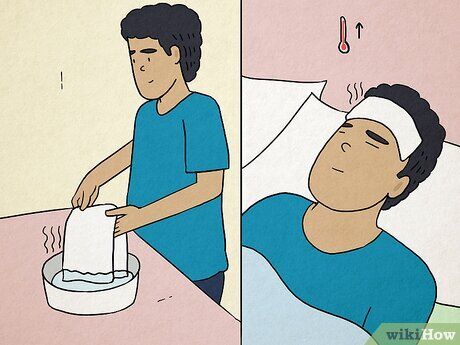 - Before letting them touch your forehead, heat a damp towel in the microwave for 30 seconds. Ensure it’s not too hot, then place it on your forehead for about a minute. The warmth will make your head and body feel hot.