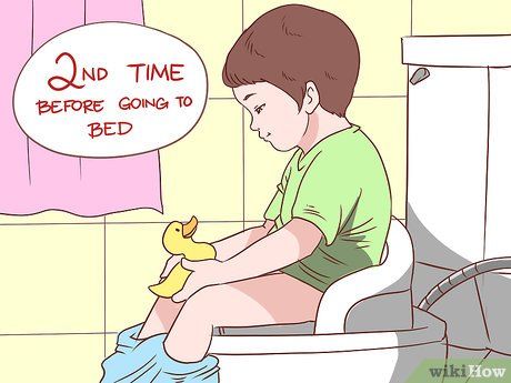 Use the 'double voiding' technique before bed. Many children tend to use the bathroom at the start of their bedtime routine, such as when they're changing into pajamas or brushing their teeth. 'Double voiding' means your child will use the bathroom once, and then go again right before they actually fall asleep.