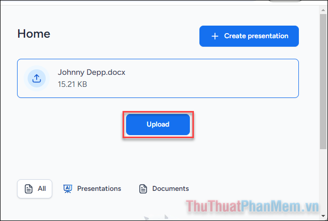 Click Upload, and SlideSpeak will begin reading and processing your document.