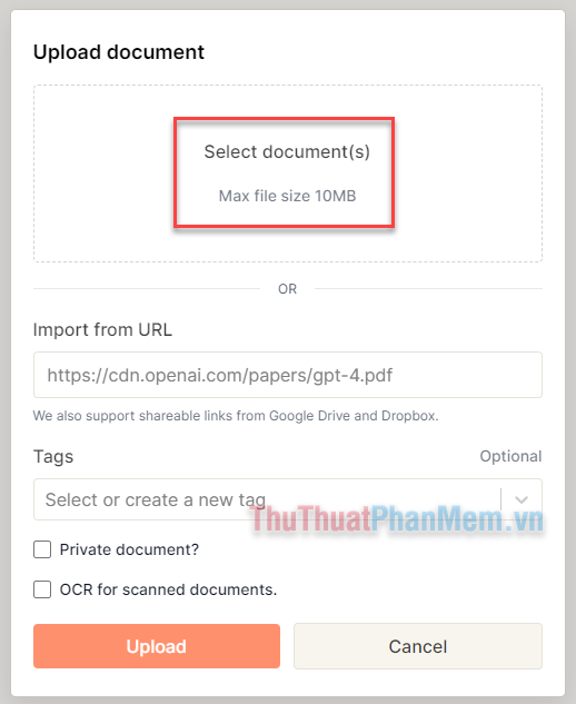 Step 6: Click Select document(s) to choose and upload the PDF file you just created.
