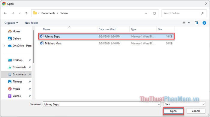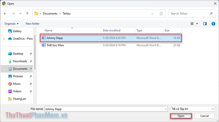 Bước 4: Chọn file Word bạn cần tóm tắt >> Open.