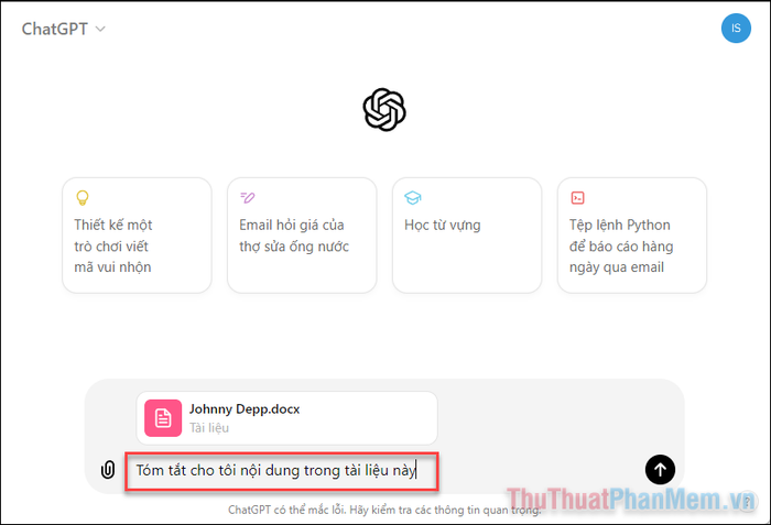 Bước 5: Bây giờ, hãy nhập yêu cầu của bạn như: “Tóm tắt cho tôi nội dung trong tài liệu này”, “tóm tắt cho tôi trong 200 từ”,…
