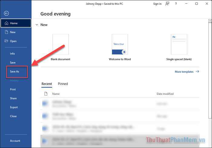 Step 1: Open the file you want to summarize, then click File >> Save As (or use the shortcut Ctrl + Shift + S).