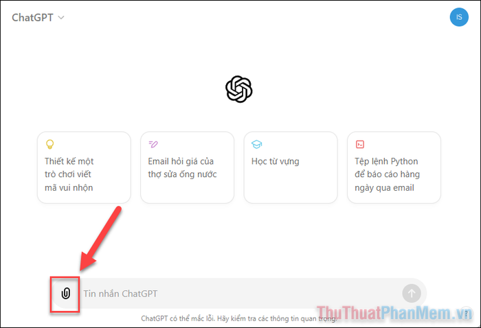 Bước 3: Nhấn vào biểu tượng Đính kèm ở bên cạnh khung nhập tin nhắn ChatGPT.