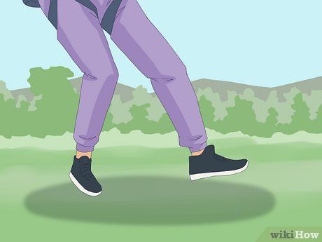 Assume the skydiver's landing position. As you near the ground, get ready for your landing by adjusting your posture so that you can land on your feet. Keep your feet together, heels up, and pointed towards the earth. Bend both your knees and hips to brace for the impact, which will be intense.