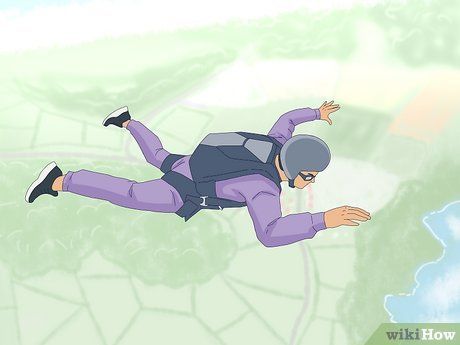 Spread your body in an X shape. Position your body to maximize drag by spreading out like a skydiver. The flatter you can make yourself, the more you can reduce your falling speed. Face the ground, raise your arms above your head, and arch your head and back upwards to catch as much air resistance as possible.