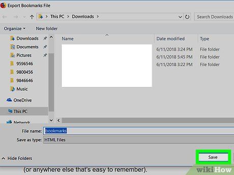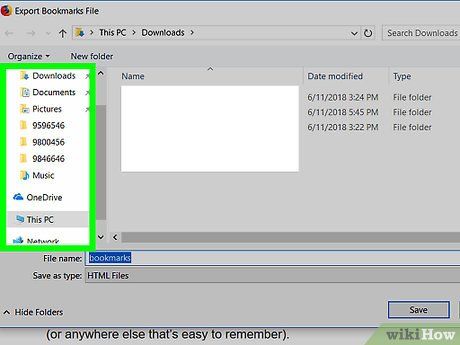 - If you're emailing the bookmarks to yourself, choose the Downloads folder (or any other easy-to-remember location).