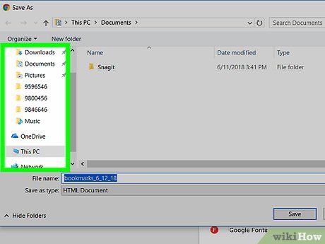 Navigate to the folder where you want to save the bookmarks. If using a USB drive, make sure to go to the flash drive in the file browser.