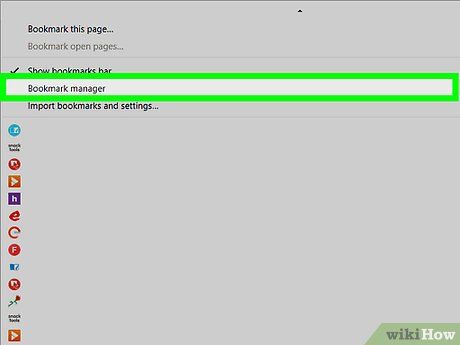 - On Chrome: Click the ⁝ icon in the top-right corner of the browser, select Bookmarks, then click Bookmark manager.