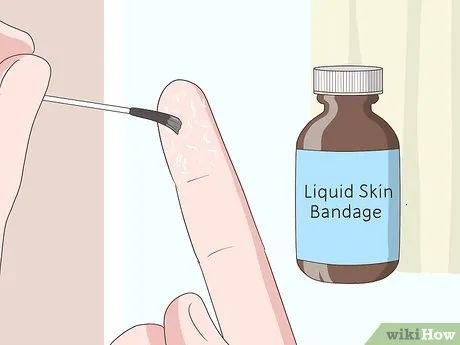 - Most liquid bandage products come with an applicator brush. Wash your hands and pat them dry before applying. You may need to wait for a minute to ensure your skin is completely dry, then use the brush to apply the liquid bandage to the deep cracks in your skin.