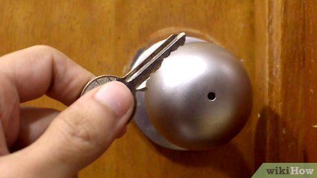 - If the outer knob has a keyhole instead of a small round hole, follow the method used for round doorknob locks on doors.
