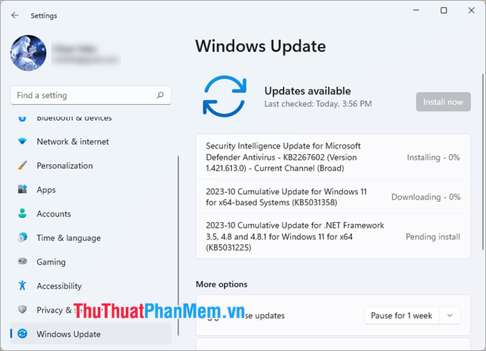 Step 1: Press the Windows + I keys to open the Settings window, then select Windows Update (or Update & Security → Windows Update for Windows 10).