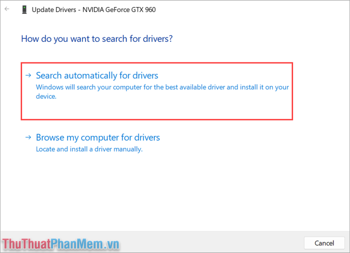 Step 4: In the new window that appears, select Search automatically for drivers to automatically update the graphics card driver.