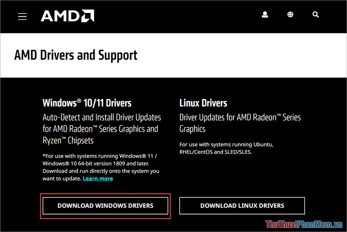 Step 1: Visit the AMD official website and click Download Windows Driver to get the installer.