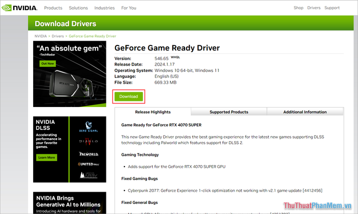 Step 2: Then, click Download to download the graphics card driver to your computer.