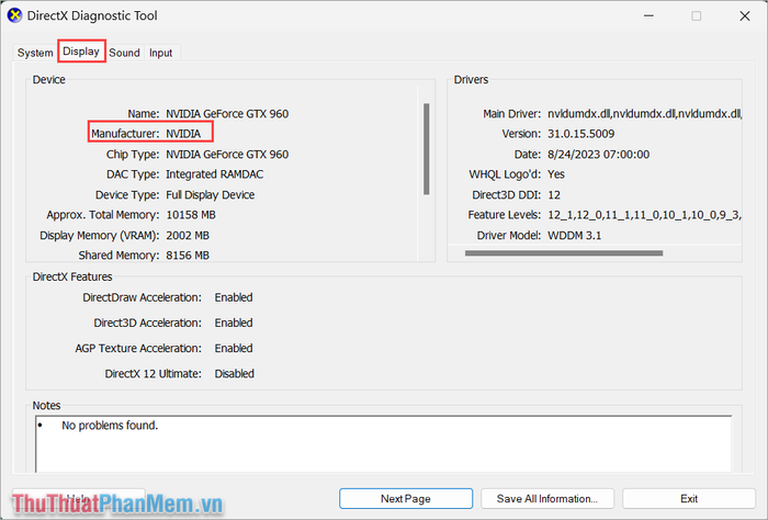 Step 2: Then, select the Display tab to view the graphics card you are using.