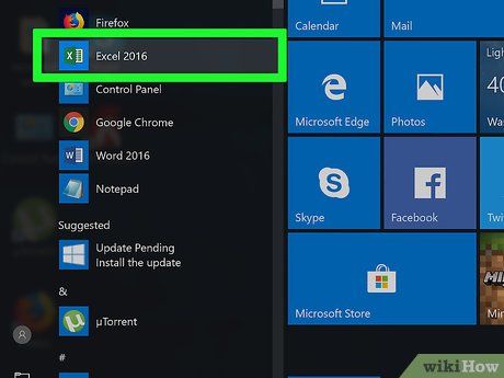 Open Microsoft Excel. The Microsoft Excel program has a white "X" icon on a green background. A new Excel sheet will appear right away.