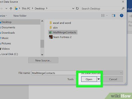 Confirm your choice. Click on the name of the Excel worksheet in the window that appears, then click OK at the bottom of the window. Your Excel worksheet will now be selected as the source for your contact data.