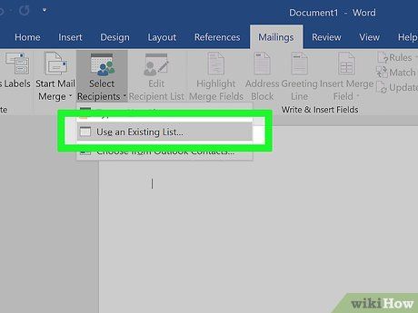 Click on Select Recipients. This is the option found under "Start Mail Merge" in the Mailings toolbar. This will open up another menu.