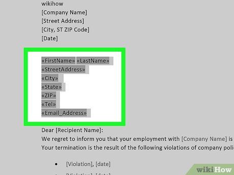 Click on Insert Merge Field (Insert Merge Field). This option is found under the "Write & Insert Fields" section in the Mailings tab. A menu will appear here.