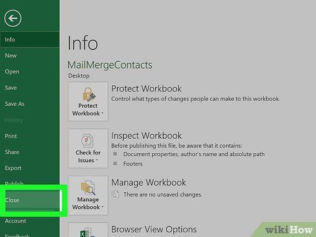 Close Excel. Click the X at the top-right corner of the Excel window (on Windows) or the red circle at the top-left corner (on Mac). You are now ready to proceed with the mail merge step in Microsoft Word.