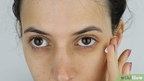 Apply eye cream under your eyes. Using your middle or ring finger, gently tap eye cream around the under-eye area, about 1 cm below the lower lash line. Start tapping near the bridge of your nose and move outward towards the outer corner of your eye.