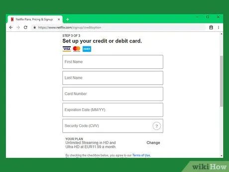 Fill in the required details. Even though the first month is free, you must provide payment information (as the system assumes you will use Netflix for more than one month). Typically, you will need to enter the cardholder's name, card number, expiration date, and security code.