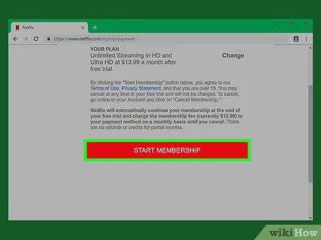 Click START MEMBERSHIP. This button is at the bottom of the page. You have now officially created a Netflix account and can start enjoying your free month.
