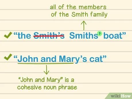 Use the Apostrophe to Indicate Possession with Plural Nouns. A common mistake when using the apostrophe with plural nouns is when referring to a family's possession. For example, the Smart family lives across from you and they own a boat. The boat is "the Smarts' boat," not "the Smart's boat." Since you're referring to all members of the Smart family, you should start with "Smarts." Since the whole Smart family owns the boat, the apostrophe is added after the 's'.