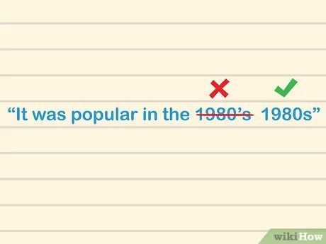 Understand the Use of Apostrophes with Abbreviations and Years. For instance, if you have the abbreviation 'CD', to make it plural, write "CDs", not "CD's". The same applies to years — instead of writing "Spandex was popular in the 1980's", write "1980s".
