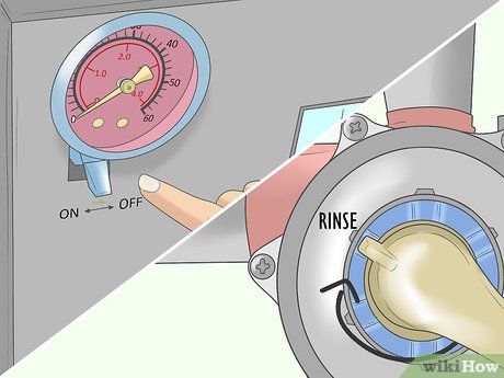 Turn the on/off switch to the off position. Locate the pool filter’s on/off switch, usually near the pressure gauge, and switch it to off. Always turn off the filter before rotating the multiport valve for backwashing; otherwise, you risk damaging the internal gasket.