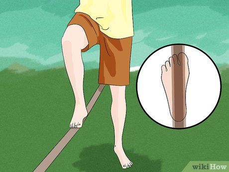 - Place your foot so that the line runs between your big toe and second toe, extending back to the middle of your heel. As you improve, try turning your feet and standing sideways, aligning your shoulders with the line.