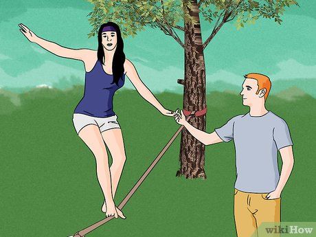 - When you're beginning, you can help each other with balance by having a spotter walk alongside the line. If you practice walking back and forth while using a shoulder for support, you'll soon find you no longer need training wheels!