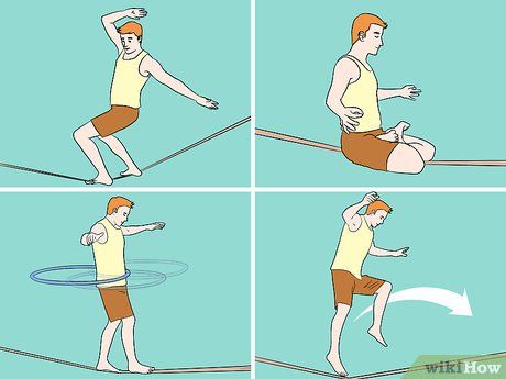 - One approach is to have a friend sit on the line a few feet away from you. This helps minimize the sway and bounce. As you improve, gradually have your friend move further along the line to allow for more movement.