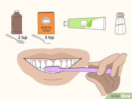 - Mix 2 teaspoons (10 ml) of hydrogen peroxide with 3 teaspoons (15 ml) of baking soda. Stir until the mixture reaches a creamy consistency, similar to regular toothpaste.
