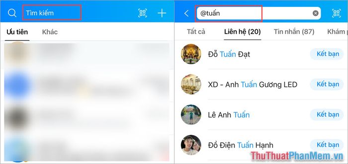 Step 2: When searching for a Zalo account by name, add the “@” symbol before the name to help the system recognize that you're looking for accounts with related names.