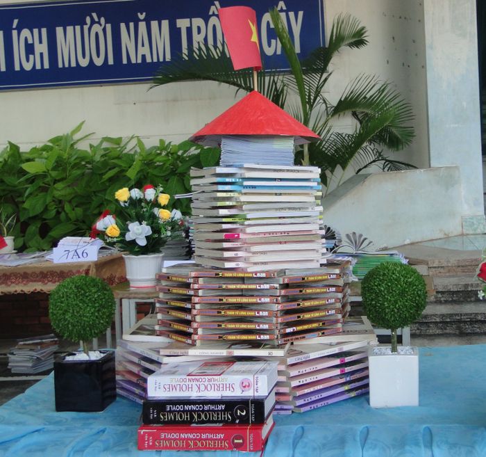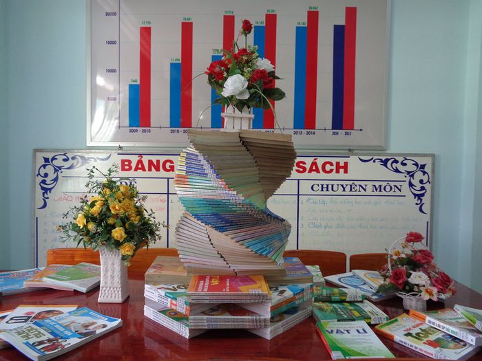 A simple yet elegant book arrangement inspired by the shape of the Ba Dinh Monument.