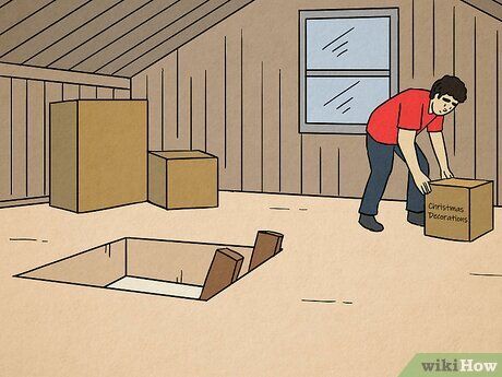 Use the attic space. Attics are ideal for long-term hiding since they’re rarely visited. Stash your item somewhere easy for you to reach but not immediately visible if someone else enters.