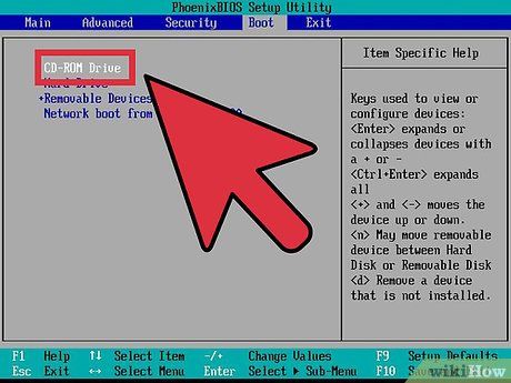 - Although each computer model is different, the boot options menu typically lists removable devices, where you can configure the CD-ROM drive to boot first. You will see a list of devices in boot order. Refer to the manual or search online if you can't find the boot options menu.