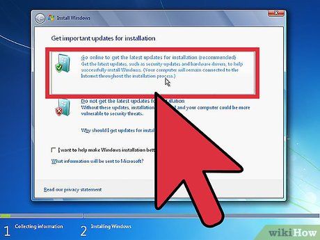 Decide whether to install updates for Windows Setup. Updates are used to fix bugs, and installing them ensures a smoother and more stable Windows 7 Setup. To update, click on Go Online to get the latest updates for installation (recommended). If you want to skip updates, click on Do not get the latest updates for installation.