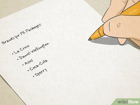 Compile a list of brands you'd like to receive PR packages from. This can be done in a Google Doc, Word document, phone notes, or even in a spreadsheet. Focus on brands that you already like and use, as well as those that regularly send PR packages to influencers in your niche. For inspiration, check out the #PRunboxing tags on TikTok and Instagram.